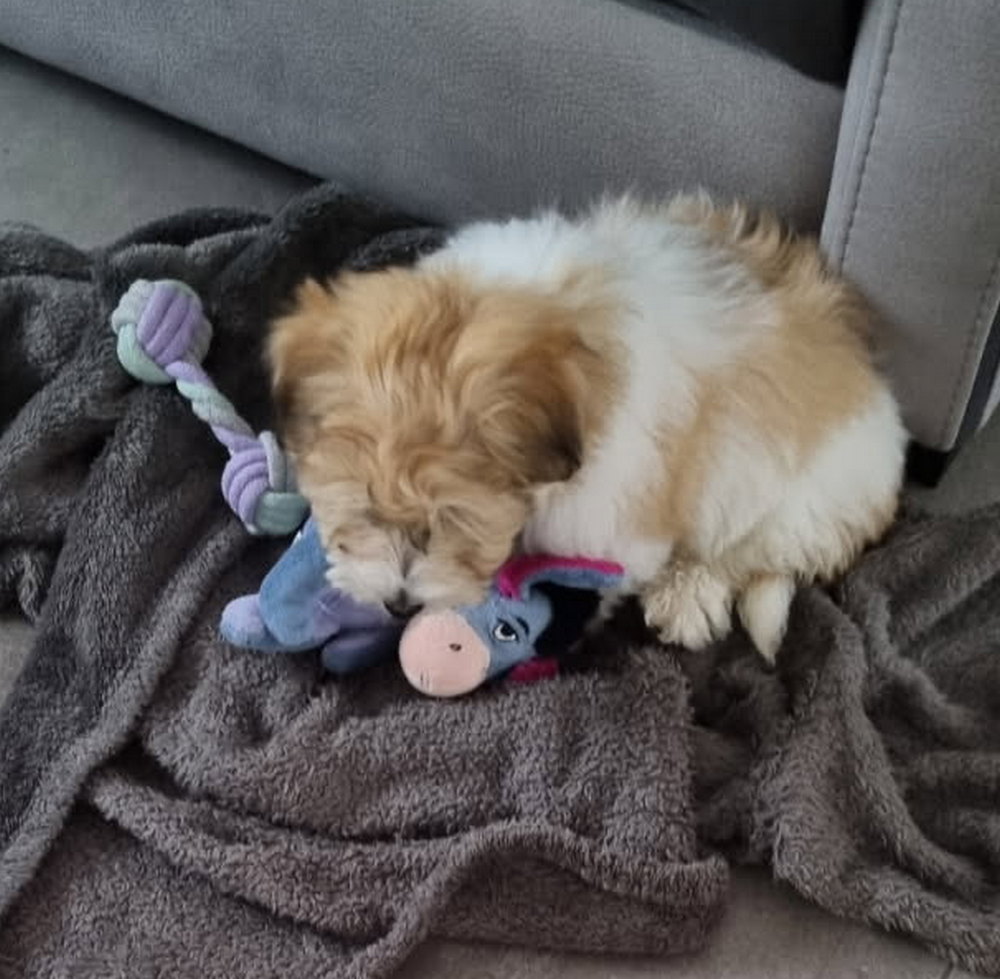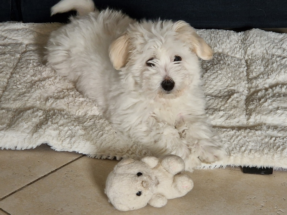 Juste pour vous dire que notre petit amour de chien s’est habitué à nous en un temps record. Il nous suit partout et des que l’on s’arrête, il se couche à nos pieds. Il fait son petit foufou, signe qu’il est heureux. Il y a eu quelques accidents de pipi, mais il réclame en gémissant. C’est vraiment un petit chien merveilleux.