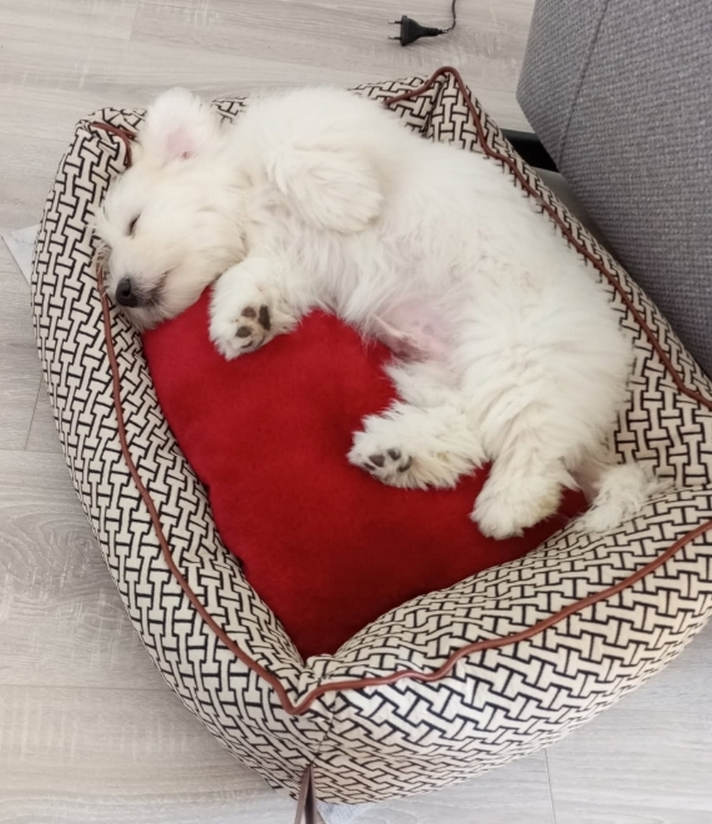 Juste pour vous dire que notre petit amour de chien s’est habitué à nous en un temps record. Il nous suit partout et des que l’on s’arrête, il se couche à nos pieds. Il fait son petit foufou, signe qu’il est heureux. Il y a eu quelques accidents de pipi, mais il réclame en gémissant. C’est vraiment un petit chien merveilleux.